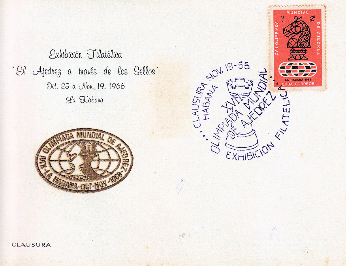 Envelope, stamp and cancellation dedicated to the 1966 Chess Olympiad