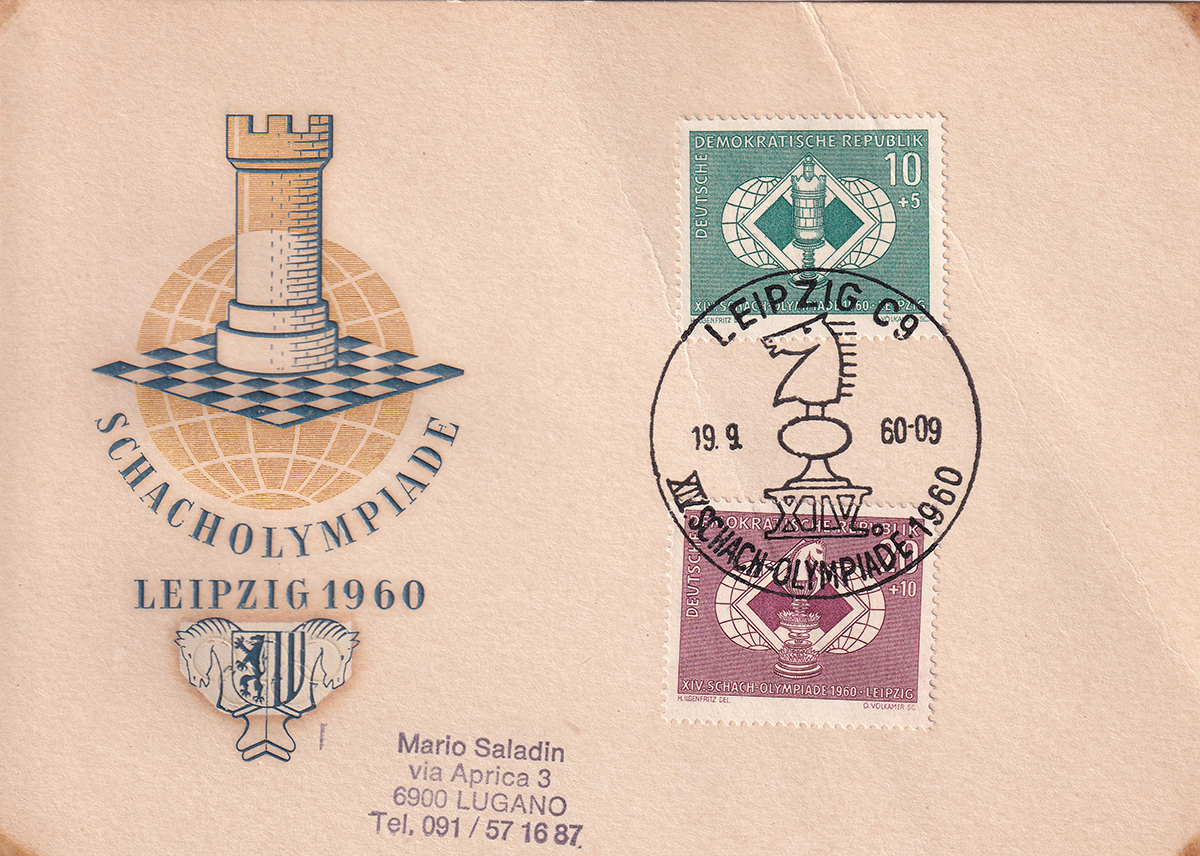 Envelope, stamps and cancellation dedicated to the 1960 Chess Olympiad