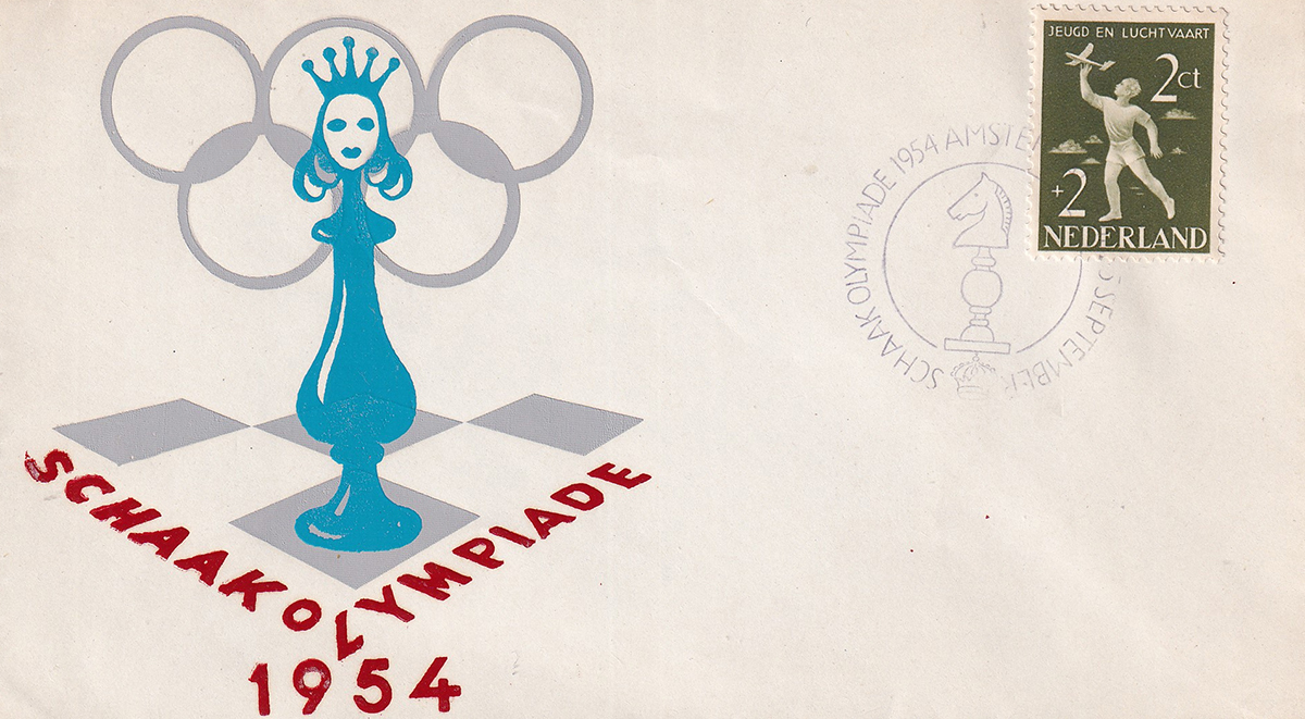 Envelope and cancellation dedicated to the 1954 Chess Olympiad