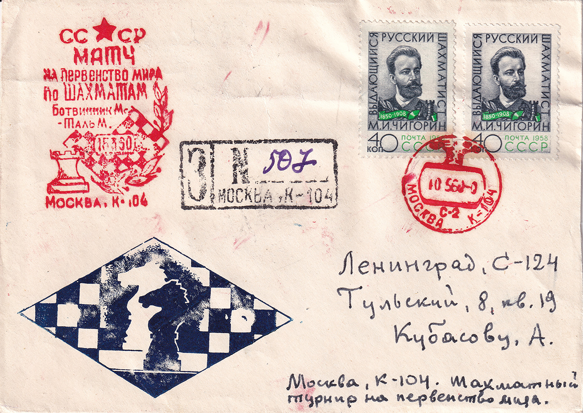 Envelope with special cancellation dedicated to 1961 World Championship Match