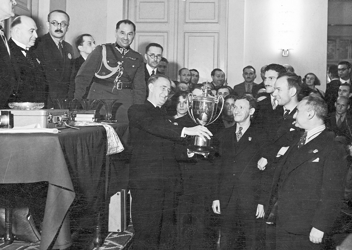 Alexander Alekhine in 1937 at the World Championship Match with Max Euwe. During this match he turned 45. Alekhine won 15½-9½ reclaiming the world championship title he had lost in their initial encounter back in 1935. This turned out to be Alekhine’s final match, as World War II disrupted the chess world, and in 1946 Alekhine was found dead in his hotel room.